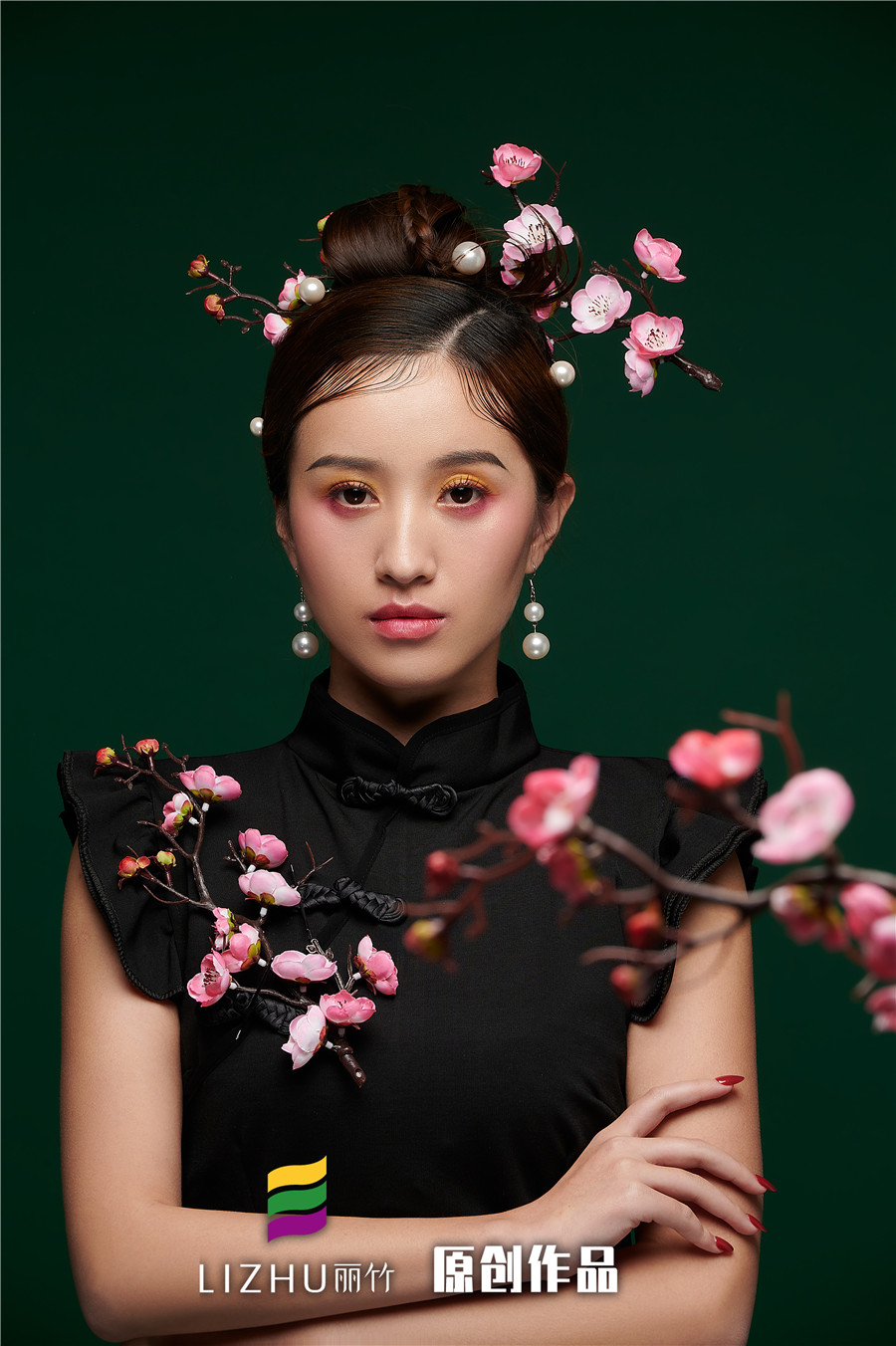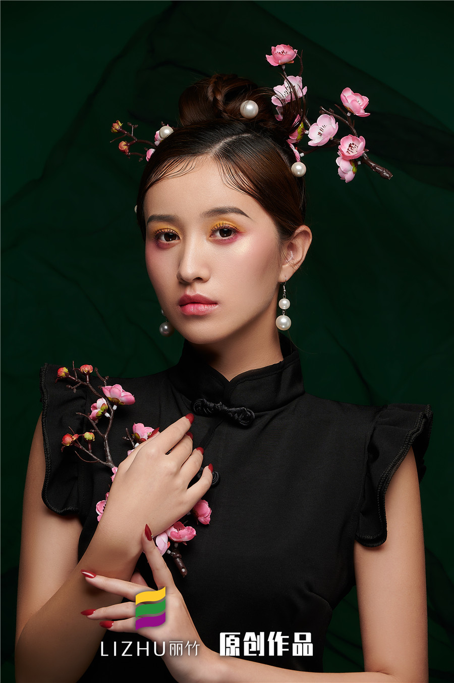 南寧化妝培訓(xùn):又颯又酷的造型,發(fā)絲間別一抹花香,添加眉眼里的柔美感覺,即使身穿高冷的黑旗袍,也讓人心生愛戀,難以忘懷。