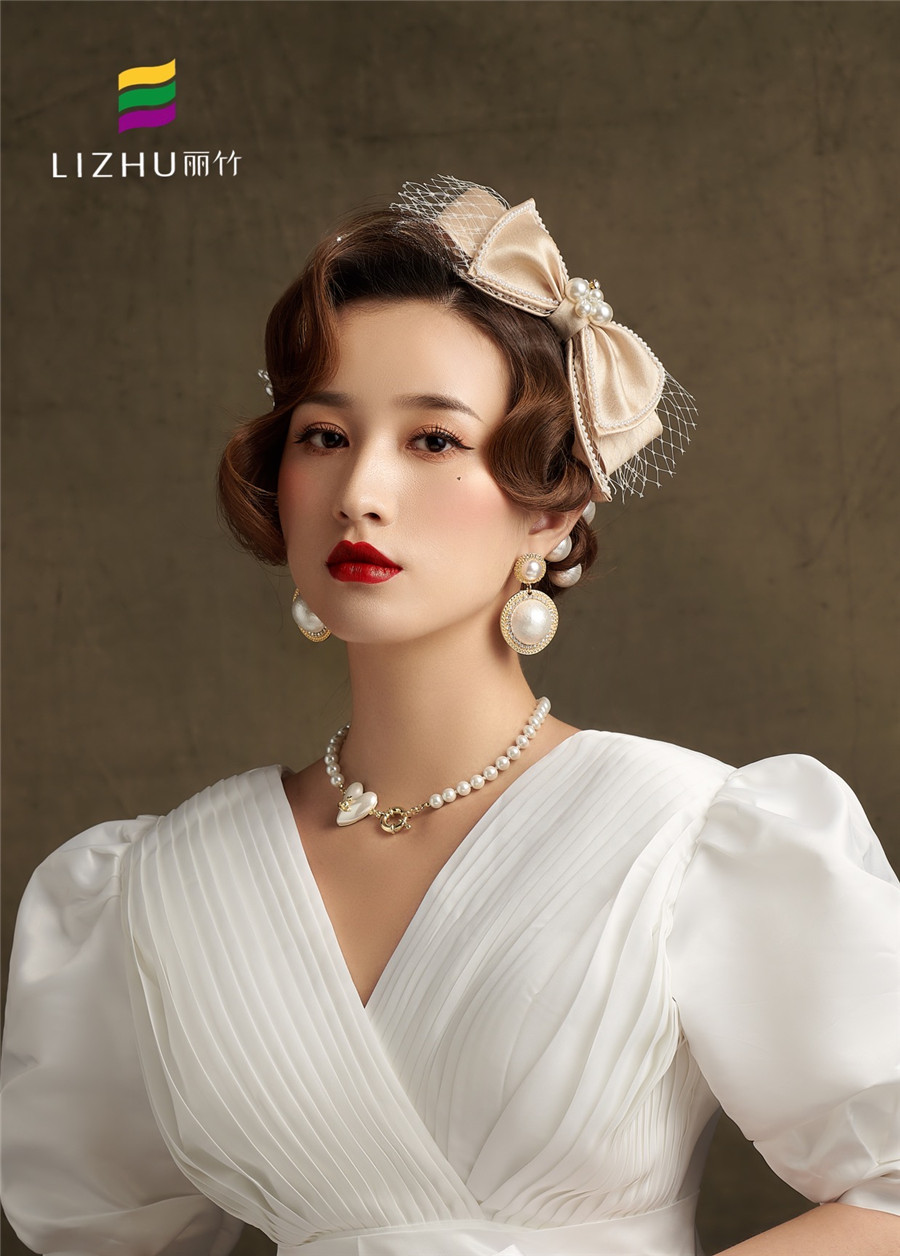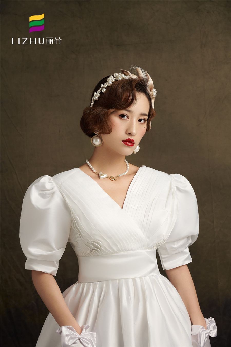 廣西化妝培訓(xùn)學(xué)校(麗竹化妝培訓(xùn)學(xué)校)作品---輕復(fù)古系列妝容造型:時(shí)尚優(yōu)雅的復(fù)古盤發(fā),佩戴香檳蝴蝶結(jié)頭飾點(diǎn)綴,畫上大氣動(dòng)人麗人妝,穿上簡潔緞面氣質(zhì)婚紗,展現(xiàn)出既純潔又優(yōu)雅的獨(dú)有氣質(zhì)。