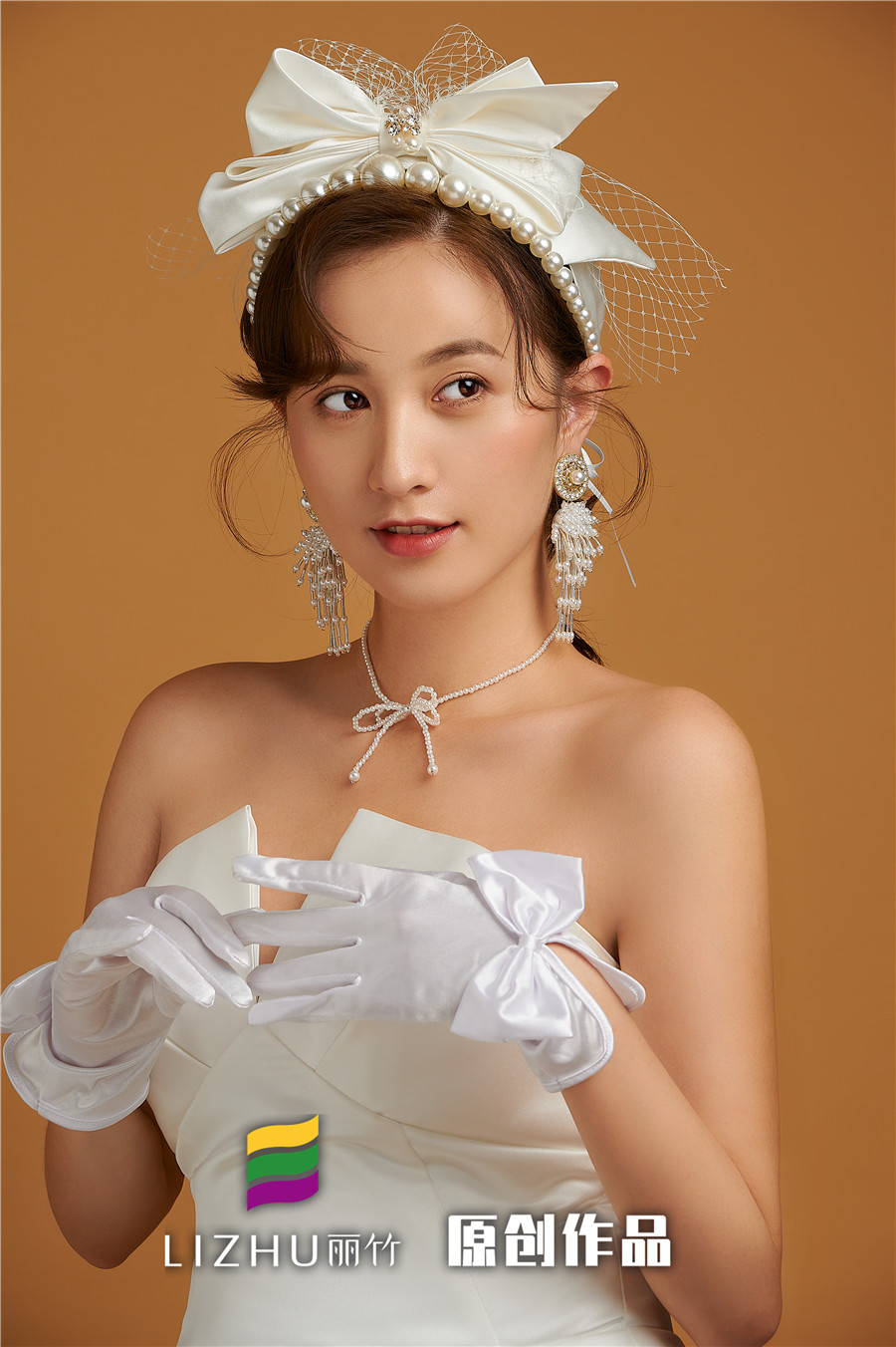 麗竹學校彩妝作品---簡約韓式新娘造型:自然輕薄的妝面似有似無,配上清新靈動的簡約盤發(fā),點綴潔白無暇的珍珠飾品,搭配白色綢緞面料的禮服,凸顯“人淡如菊”的氣質。