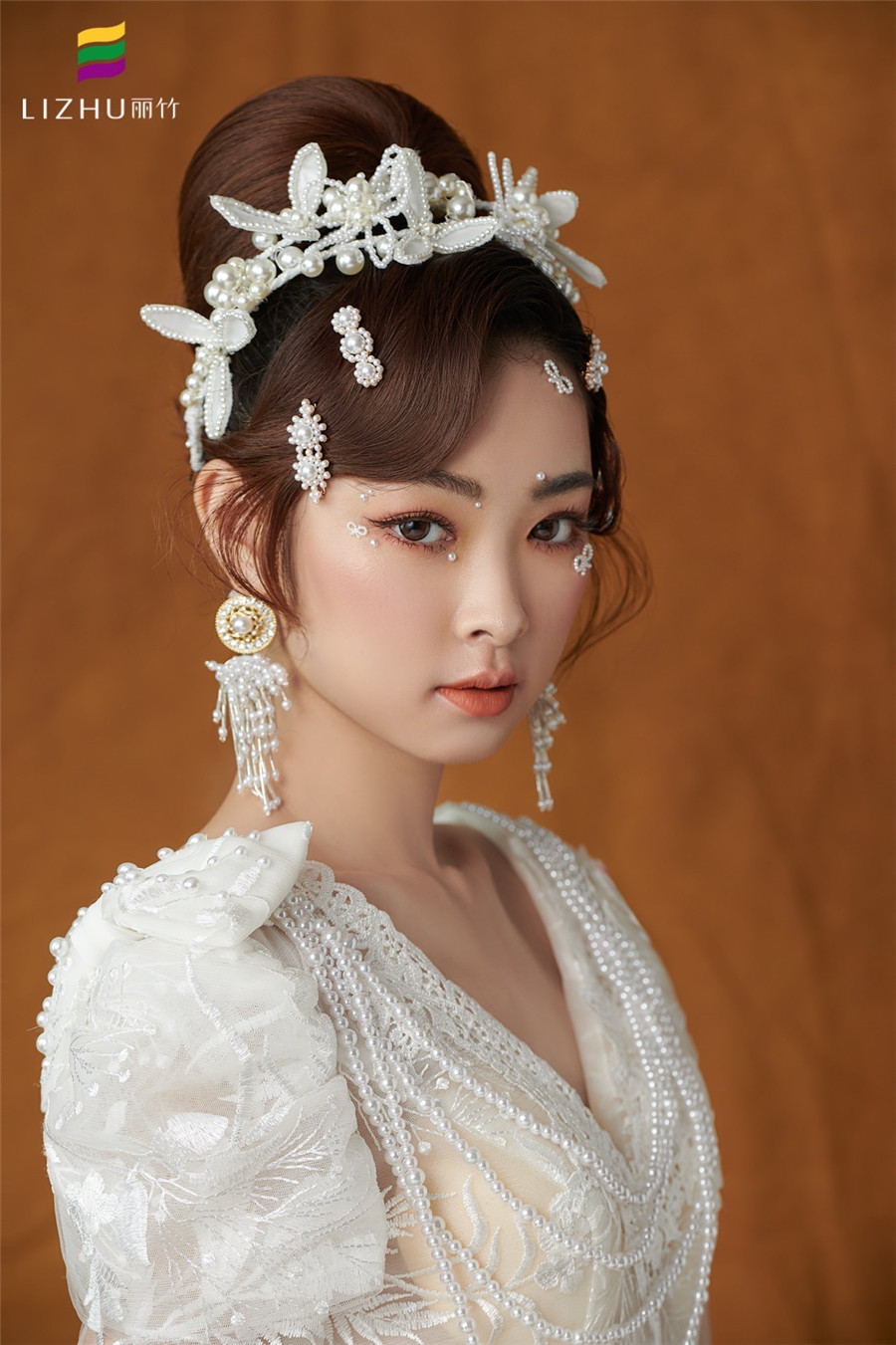 南寧化妝學(xué)校作品:輕奢復(fù)古珍珠妝容:復(fù)古簡潔優(yōu)雅的盤發(fā),佩戴少女俏皮的頭飾,純白珍珠搭配的精致,展示出萬種舊日風(fēng)情,使得微微一笑很傾城!