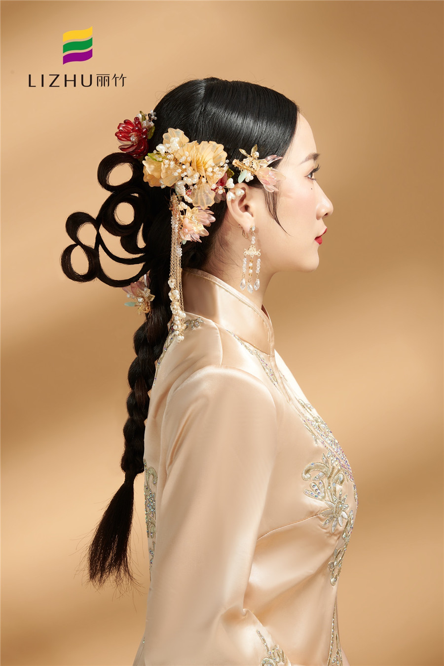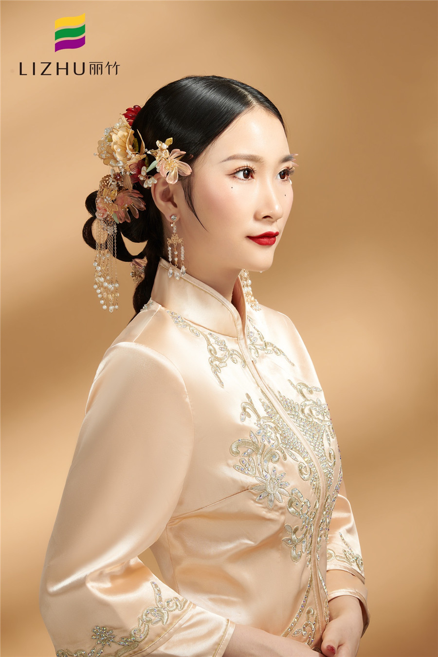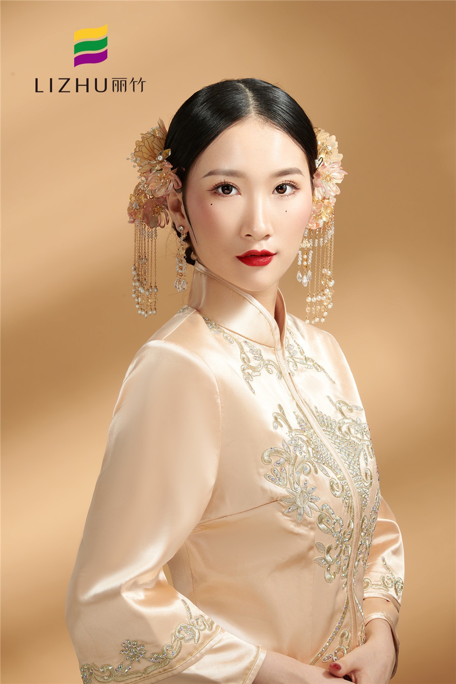 南寧彩妝造型學校(麗竹彩妝學校)作品:簡約秀禾新娘造型:香檳色的秀禾服精致簡約,整體造型妝容干凈清新,搭配琉璃珠花的步搖發(fā)簪,減齡端莊大氣,真是太美啦!