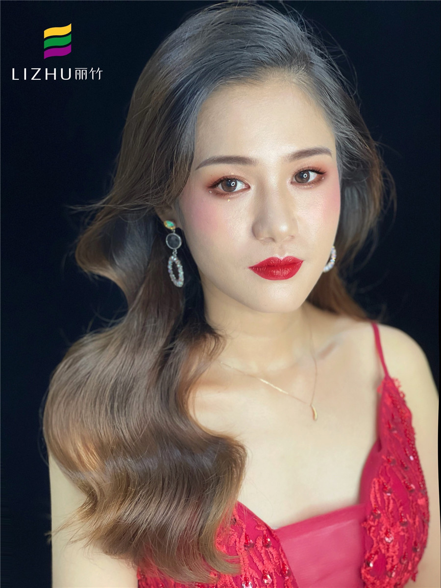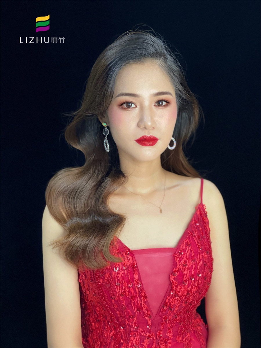 南寧化妝培訓(xùn)(麗竹彩妝培訓(xùn)學(xué)校)作品:簡約禮服造型:粉橘色溫柔的妝容,優(yōu)雅婉約的韓式披發(fā),搭配大氣紅色珠片禮服,散發(fā)簡約的美。