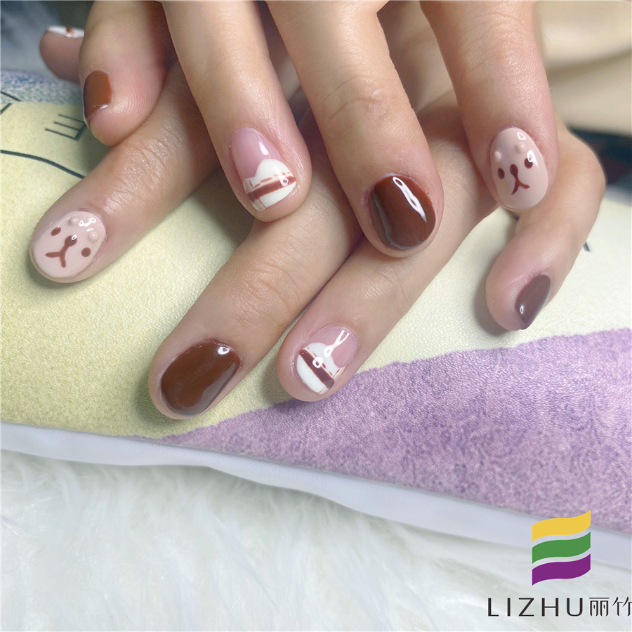 南寧學美甲的學校作品:短圓指甲卡通款美甲(一)