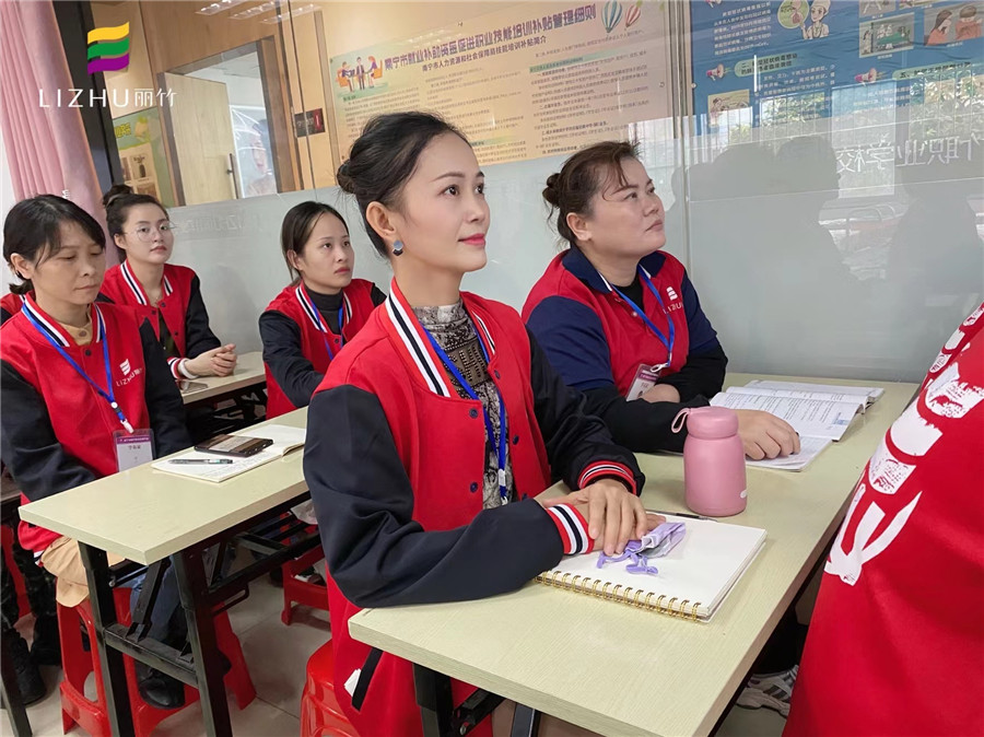 廣西美容學(xué)員為與韋老師進行課堂互動