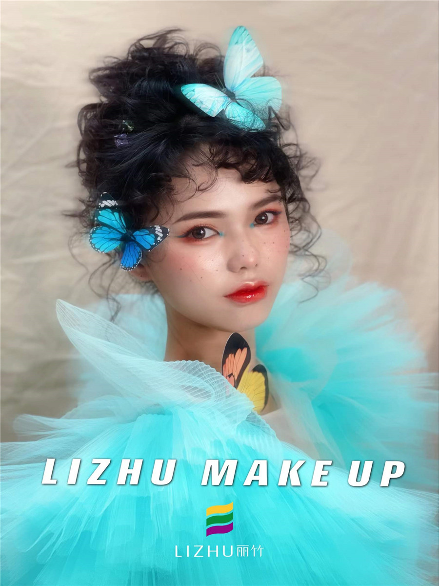 南寧彩妝學(xué)校作品分享---個(gè)性寫(xiě)真制造型:蝴蝶頭飾與羊毛卷發(fā)型的組合,搭配今年大火的雀斑曬傷腮紅妝容,將嬌羞與純美展現(xiàn)無(wú)遺,甜美如晨間綻放的花蕾。
