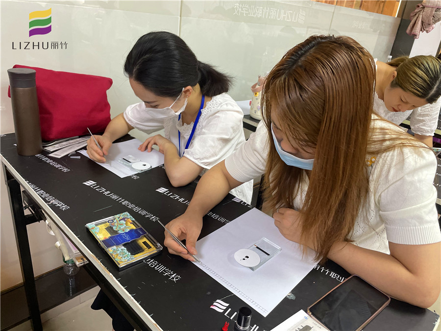 南寧有實(shí)力的美睫教學(xué),麗竹美睫培訓(xùn)班---學(xué)員們進(jìn)行美睫紙上練習(xí)