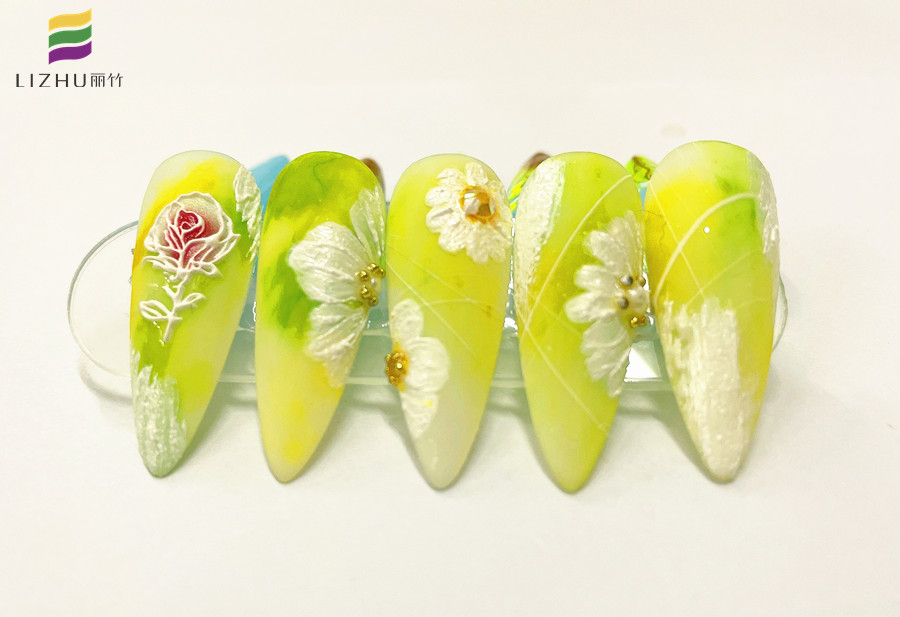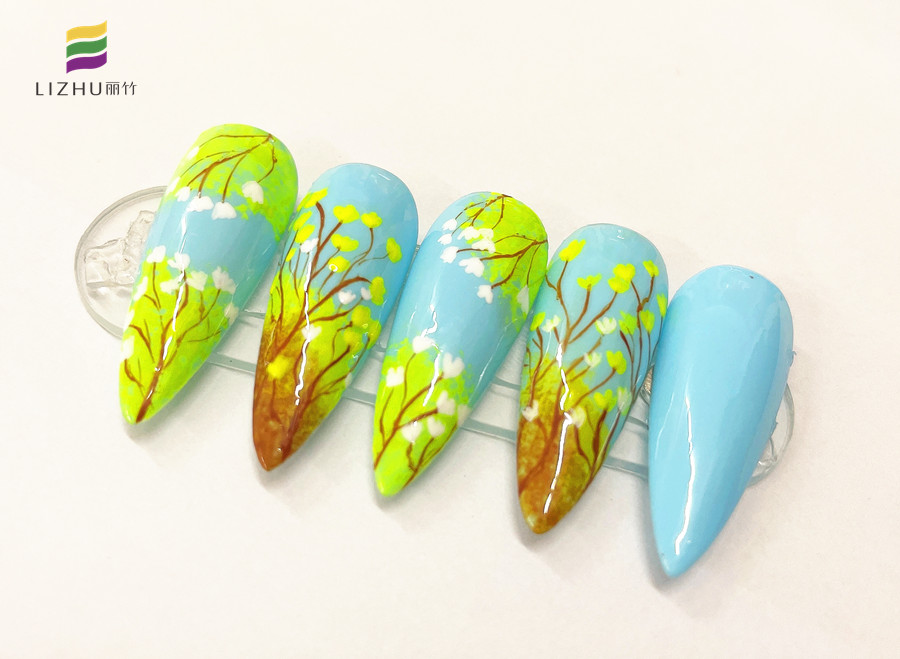 廣西時尚美甲培訓(xùn)、廣西美甲學(xué)習(xí):春日的代表色,怎么能少得了綠色,黃色,和藍(lán)色呢?如果讓你將這幾種顏色組合在一起繪制一幅春日美甲作品,你想好怎么創(chuàng)作了嗎?如果還沒有想好,不如就先看看廣西專業(yè)正規(guī)美甲學(xué)校(麗竹美甲學(xué)校)作品吧!