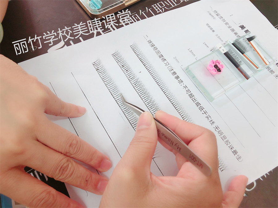 紙上嫁接睫毛,南寧美甲美睫學校學員練習