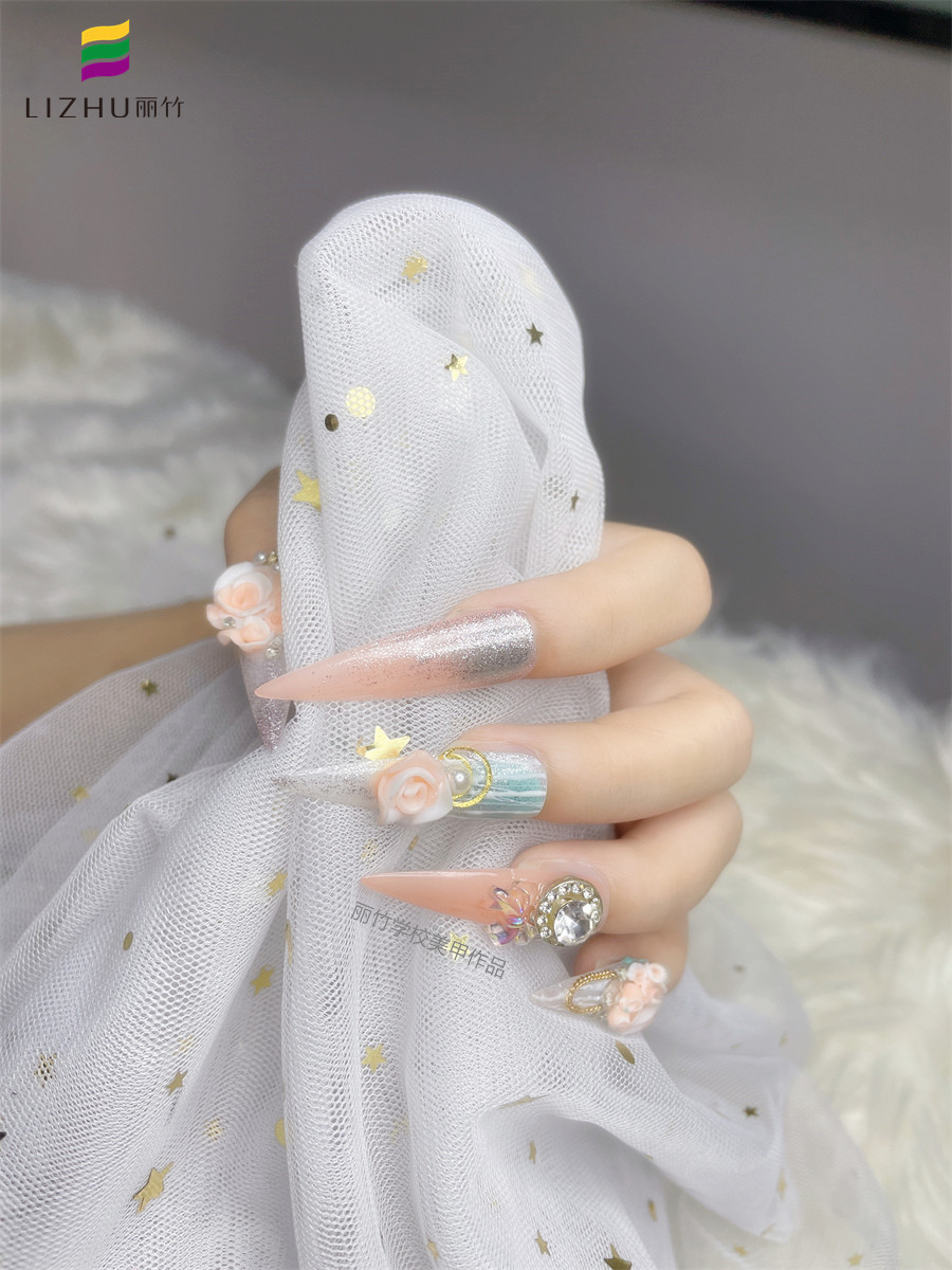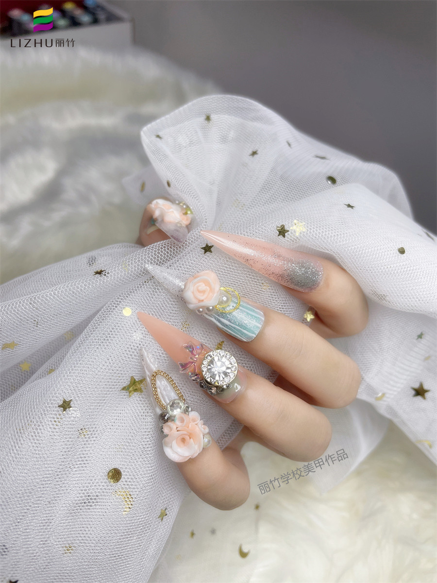 南寧學美甲哪家有實力?麗竹美甲學校用作品證明實力---鉆石雕花美甲(二)