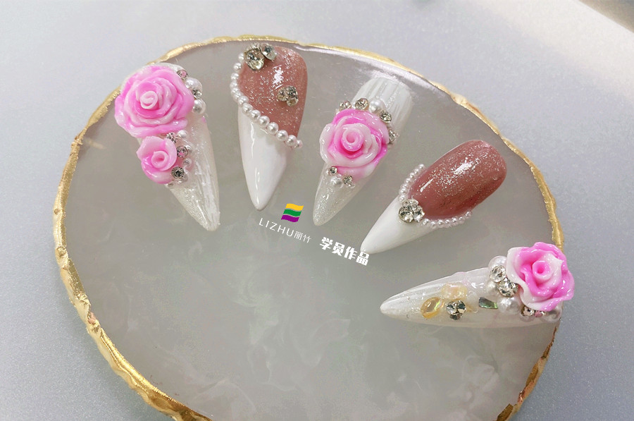 廣西美甲學(xué)校哪家好?麗竹學(xué)校學(xué)員用證明實(shí)力---玫瑰雕花美甲(一)