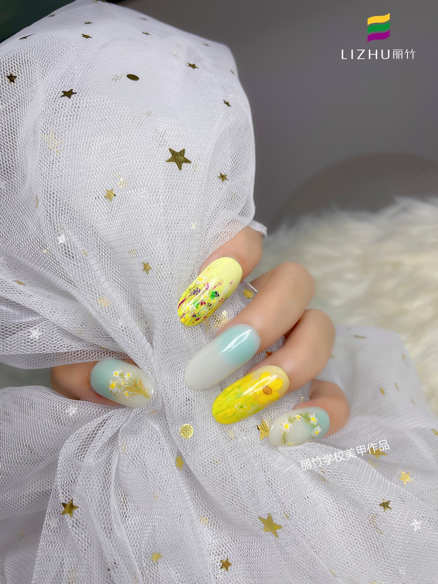 廣西美甲十佳學校-麗竹美甲學校作品:秋日花朵美甲