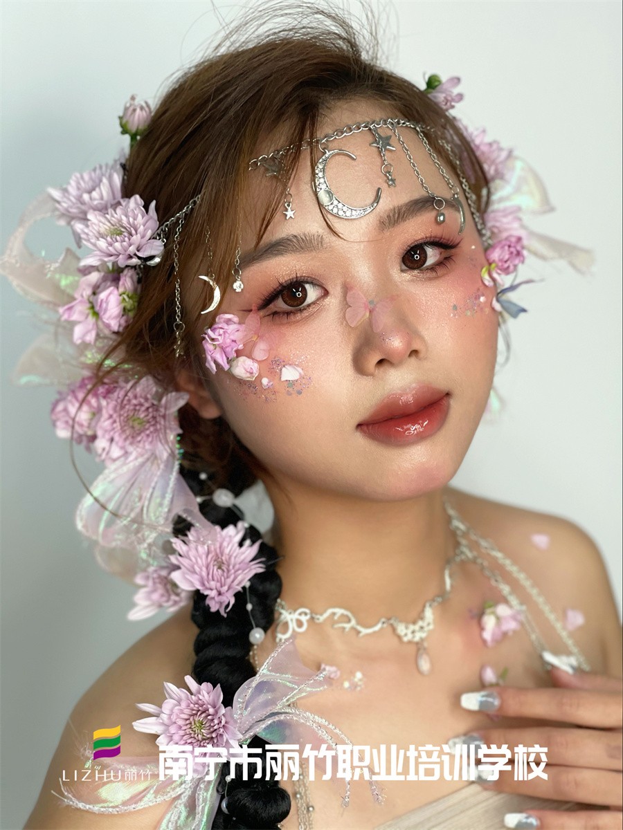 廣西化妝學(xué)校推薦:廣西彩妝網(wǎng)紅培訓(xùn)班作品---哈尼甜心公主造型!以花樣妝容為主,極具民族特色的服飾與頭飾更為整體造型增添了仙氣滿滿的氛圍感,營造出了甜蜜的花樣公主形象。如果你對(duì)彩妝感興趣,建議你到廣西彩妝學(xué)習(xí)機(jī)構(gòu)或是專業(yè)廣西時(shí)尚造型彩妝學(xué)校去學(xué)習(xí)。