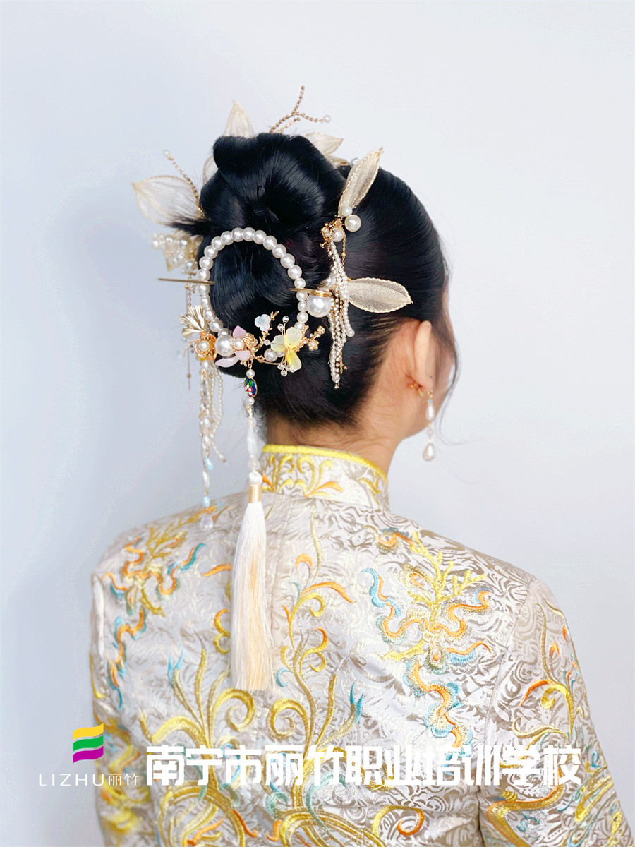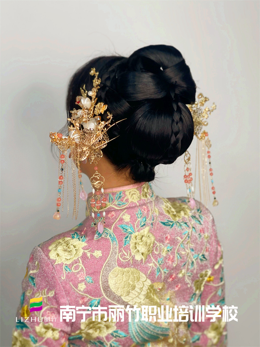 廣西中式新娘發(fā)型培訓(xùn)、廣西化妝扎發(fā)培訓(xùn):“卷,扭,包”,這3種手法在秀禾發(fā)型的運(yùn)用中尤為突出。趕緊和我們一起去看看廣西化妝盤(pán)發(fā)學(xué)校課堂上學(xué)員們的中式新娘發(fā)型作品吧!想在廣西學(xué)秀禾發(fā)型?想知道廣西學(xué)盤(pán)發(fā)哪家好?歡迎到麗竹學(xué)校參觀(guān)試聽(tīng)!