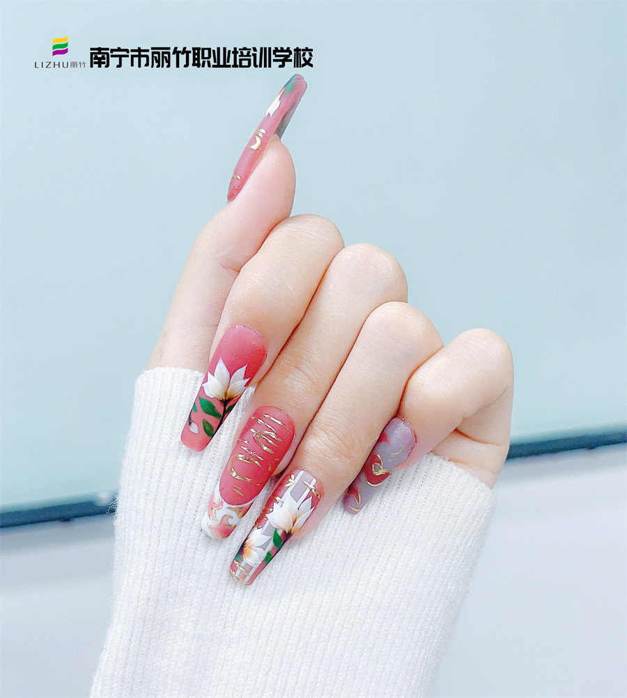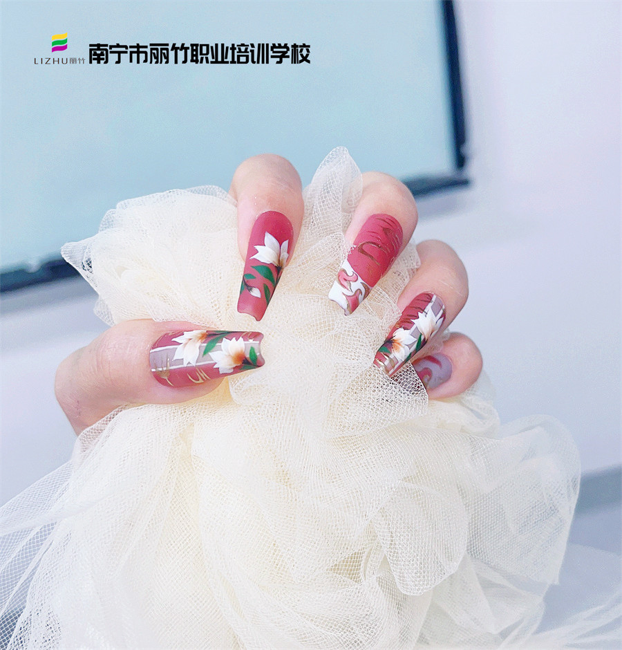南寧學(xué)美甲職業(yè)、南寧培訓(xùn)美甲造型:當(dāng)玉蘭花和中國紅相互碰撞時,會擦出什么樣的火花呢?想知道它們的奇妙反應(yīng),不如來看看南寧美甲正規(guī)學(xué)校-南寧美甲款式造型班繪制的國風(fēng)玉蘭花美甲。隨著地?cái)偨?jīng)濟(jì)的興起,美甲也成為了很多人選擇創(chuàng)業(yè)的渠道。所以,如果你對美甲有興趣,不防到麗竹學(xué)校美甲專業(yè)試聽和參觀,了解更多詳情吧!