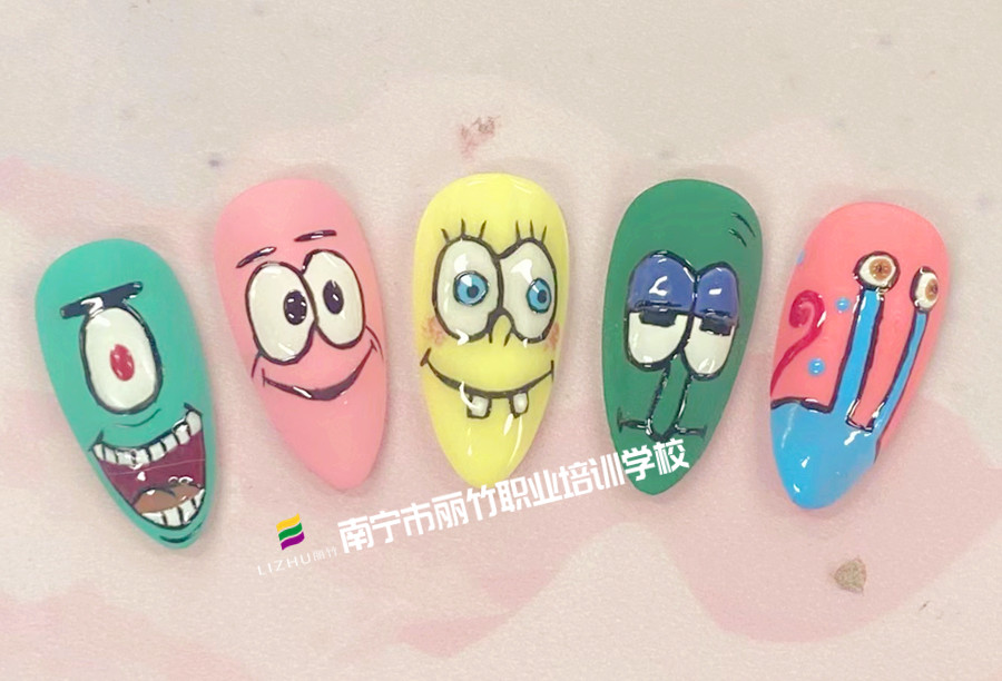 南寧學美甲款式、南寧培訓美甲師:讓我們短暫忘掉世俗的煩惱,將你的童心未泯繪于“指”山,去創(chuàng)造屬于你的天馬行空!一起來看看南寧美甲學校的卡通系列美甲吧!每個人的童趣都不一樣,也許你的童趣更富色彩,如果是這樣,不妨也像南寧美甲造型培訓-南寧美甲培訓班的學員們一樣動手將它們繪制成美甲作品吧!