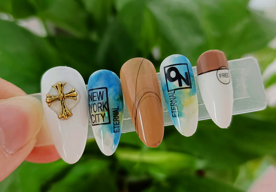 南寧學(xué)美甲款式:美甲是一門課時短,但可以在短期內(nèi)快速驗收學(xué)習(xí)成果的專業(yè)。2周美甲理論作為基礎(chǔ),進(jìn)而將基礎(chǔ)運用到實踐美甲款式作品的繪制中,45天的課程即可讓你成為可以獨立繪制各種時尚類型的美甲作品。下面,來看看剛剛升班首 次挑戰(zhàn)獨立完成作品的-南寧美甲學(xué)校實訓(xùn)學(xué)員們繪制的作品吧!