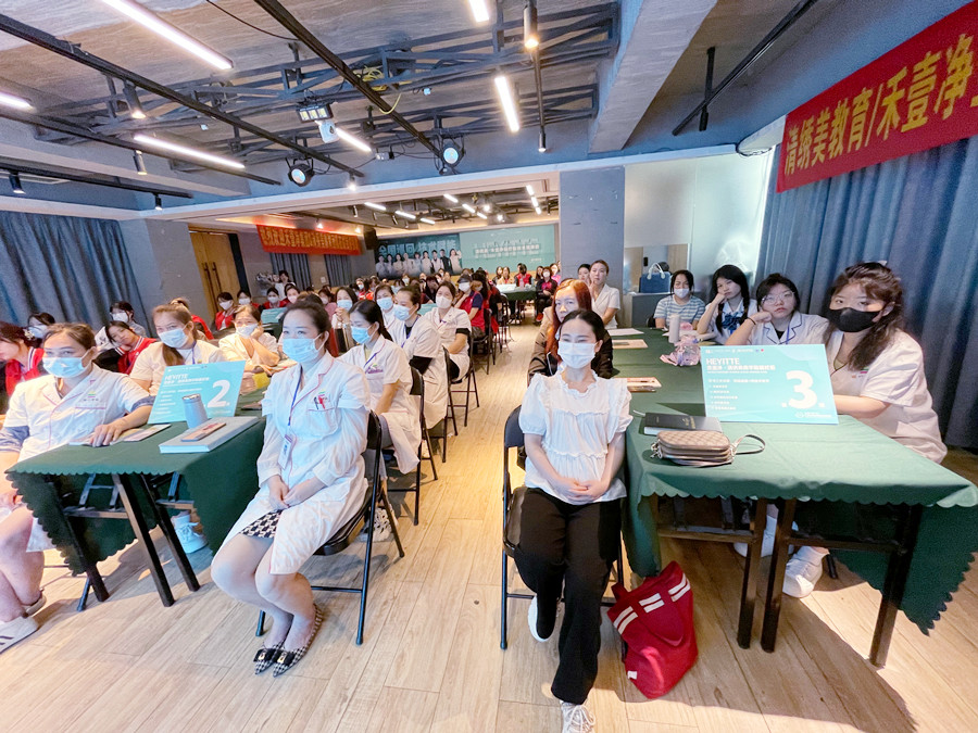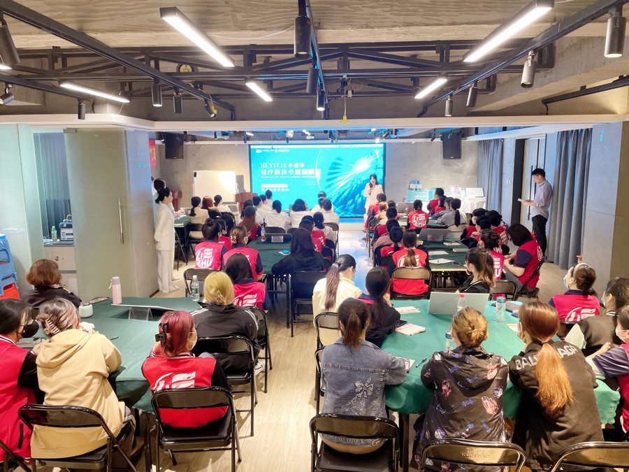 廣西南寧美業(yè)培訓(xùn)學(xué)校-南寧麗竹學(xué)校攜手清繡美教育 | 眾禾集團 | 禾壹凈品牌共同舉辦的輕療膚賦能技術(shù)會(南寧站)專場課程(簡稱:麗竹學(xué)校輕療膚課程),如約在4月18日火熱開啟啦!現(xiàn)場不僅有美容,美甲,化妝班的在校學(xué)員,也有很多想要引進新技術(shù)的店家,將近百人的現(xiàn)場,氣氛熱烈高漲。