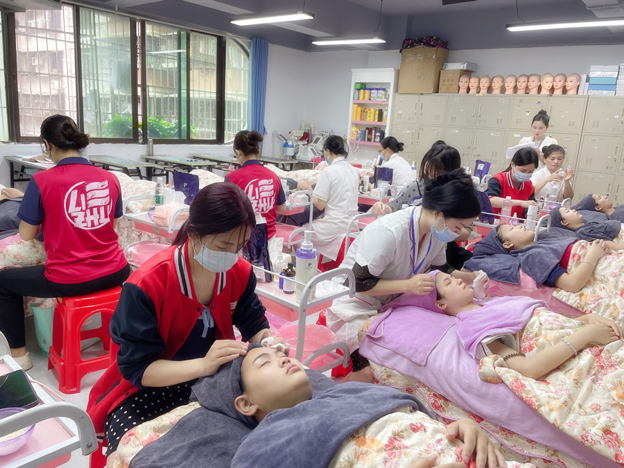 廣西美容課堂實操、廣西皮膚管理培訓:你認為化妝需要學皮膚管理嗎?想要上妝服帖,要懂得如何護膚。所以你要好好學習廣西美容專業(yè)課程---皮膚管理課程內容。在廣西南寧美容護膚培訓班的教室里,化妝班的學員就在老師的指導進行面部皮膚管理的手法練習。