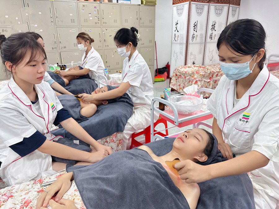 廣西美容美體師:在今天的廣西美容課堂實訓練習中,和廣西美容培訓班的同學們跟著老師一起去學習下肩頸刮痧的好處吧!此外,如果你想知道廣西哪里可以學經(jīng)絡養(yǎng)生?歡迎了解廣西美容專業(yè)培訓學校 -麗竹學校-中醫(yī)經(jīng)絡養(yǎng)生全科班的課程內(nèi)容,同時也歡迎大家到校參觀和試聽。