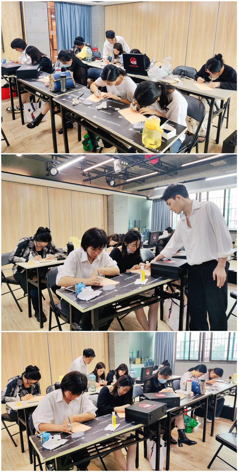 為期7天的《紋繡造型全能大師班》的課程已經(jīng)過(guò)半,同學(xué)們也在學(xué)習(xí)了色料的知識(shí)后,開(kāi)始在仿皮上進(jìn)行眉眼唇的填色練習(xí),讓我們共同等待同學(xué)們進(jìn)行真人實(shí)操的練習(xí)吧!