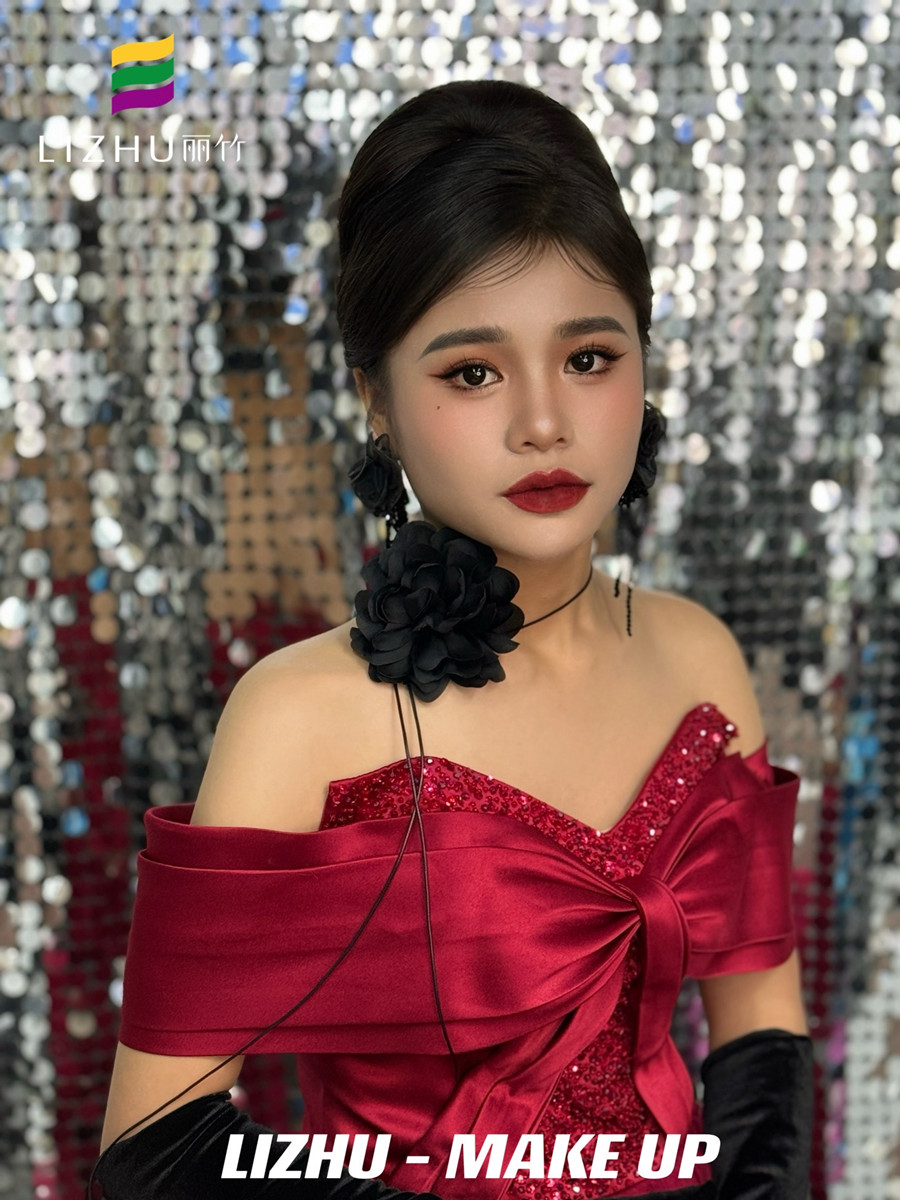 南寧化妝美業(yè)學(xué)習(xí)、南寧化妝彩妝(麗竹化妝彩妝培訓(xùn))作品---復(fù)古年會造型:明媚動人氣質(zhì)妝容,簡約大氣復(fù)古赫本發(fā)型,佩戴夸張黑色花朵配飾,身穿酒紅色亮片抹胸禮服,仿佛置身于年會中的紅玫瑰。想知道南寧化妝學(xué)校哪家時尚?或是想知道南寧學(xué)化妝學(xué)費便宜的是哪家?歡迎大家趁著麗竹學(xué)校正在進(jìn)行招生優(yōu)惠活動之際,關(guān)注麗竹學(xué)校彩妝專業(yè),...