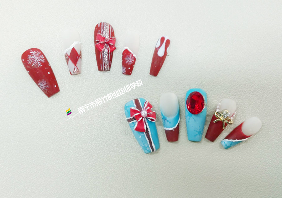 廣西美甲教育、廣西美甲培訓(xùn)中心:說(shuō)起圣誕節(jié)主題美甲的元素,不如現(xiàn)在就像廣西南寧美甲款式進(jìn)修班(麗竹美甲款式進(jìn)修)的同學(xué)們一樣,在甲面上畫(huà)出自己喜歡的圣誕美甲元素吧!美甲是一門(mén)受用一 生的技術(shù),如果你想在廣西學(xué)美甲技能,想知道廣西美甲培訓(xùn)哪里學(xué)費(fèi)便宜?那麗竹學(xué)校正在進(jìn)行的招生優(yōu)惠活動(dòng)千萬(wàn)不要錯(cuò)過(guò)啦。
