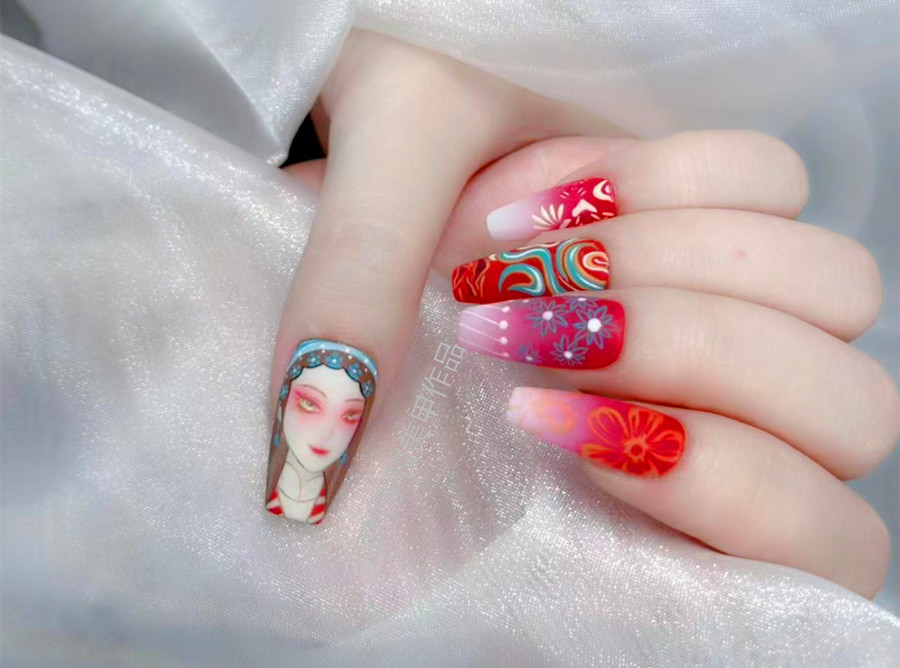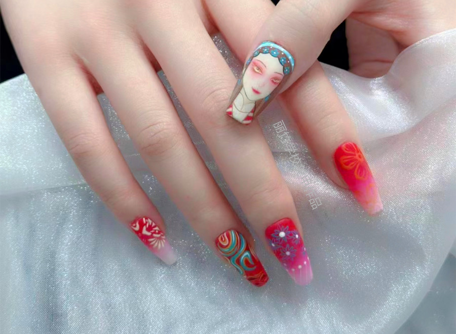 南寧美甲進(jìn)修(麗竹美甲培訓(xùn))作品---國(guó)風(fēng)花旦美甲(一)
