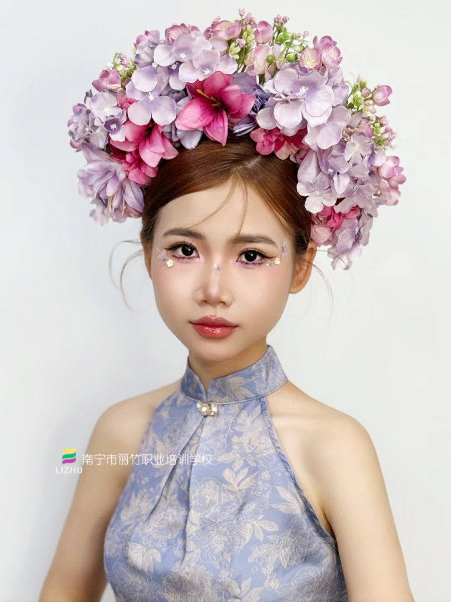 廣西美妝專業(yè)培訓(xùn)、廣西美妝課堂作品欣賞:作為廣西化妝名校-麗竹化妝培訓(xùn)也正在進(jìn)行簪花造型課堂實(shí)況的課程,趕緊和我們?nèi)タ纯窗伞H绻銓?duì)化妝感興趣,想知道廣西學(xué)化妝哪家強(qiáng)?不如直接到麗竹學(xué)?;瘖y專業(yè)去試聽(tīng),了解詳細(xì)課程后在決定是否要報(bào)名學(xué)習(xí)吧!