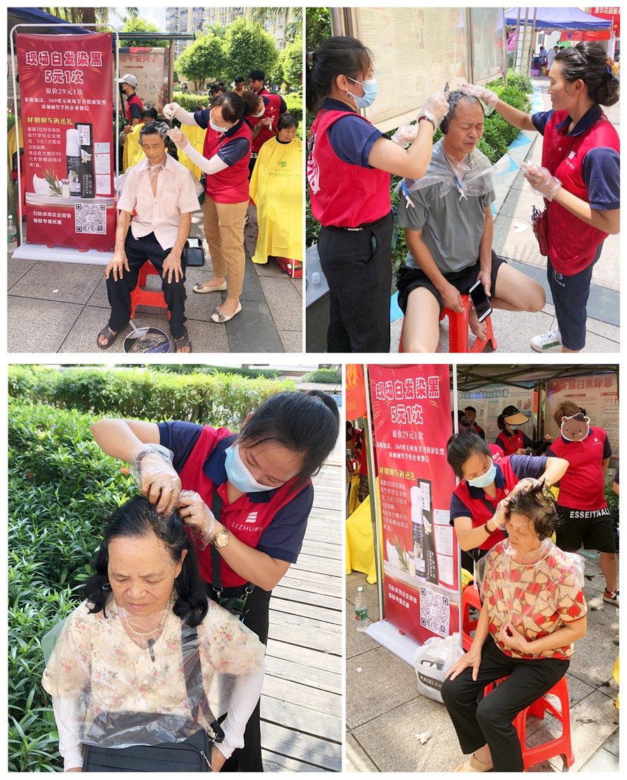 為了保證大家的使用效果,此次學(xué)校也采用了全新染發(fā)產(chǎn)品。產(chǎn)品為慕斯泡沫,添加有芳香精神,360度無死角染黑,無臭味,上色均勻,方便操作。如果你也想體驗(yàn)“白染黑”服務(wù),歡迎到麗竹學(xué)校公益活動(dòng)現(xiàn)場(chǎng)咨詢相關(guān)事宜。