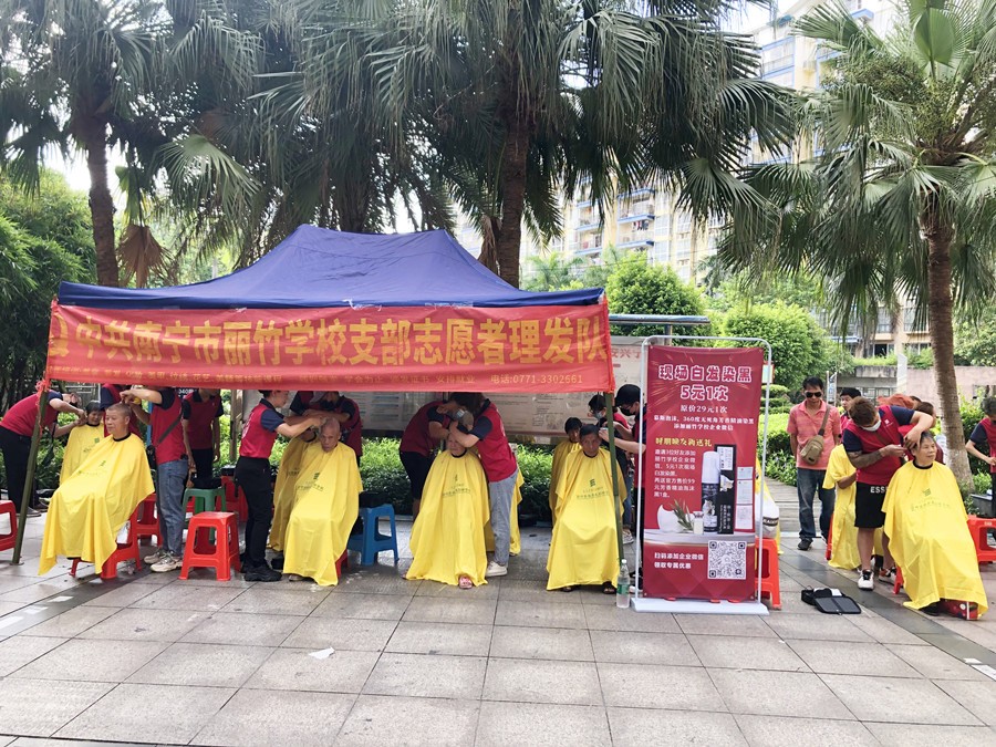 2023年7月23日,南寧美發(fā)志愿者服務(wù)隊(duì)為澳華社區(qū)居民義務(wù)美發(fā)