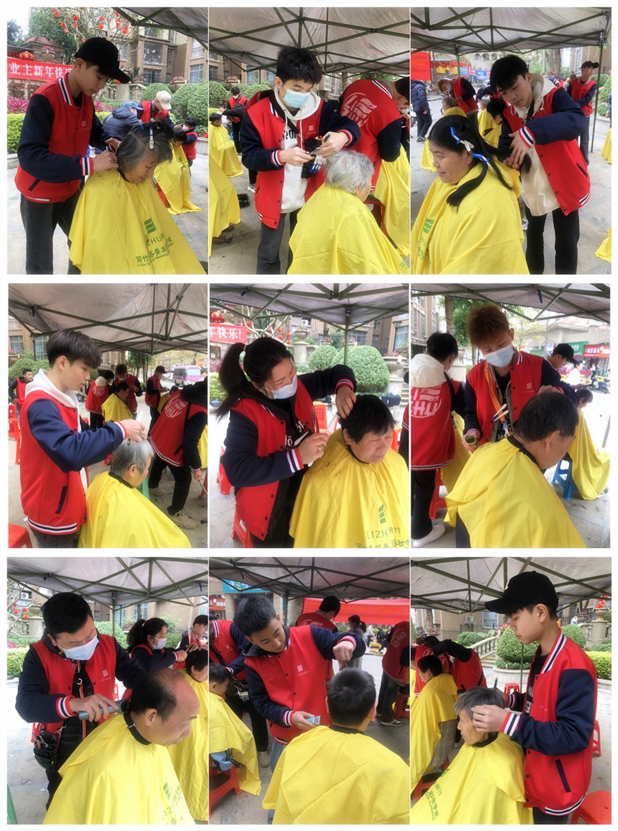 廣西理發(fā)實踐、廣西美發(fā)社會活動免費:3月初始,廣西理發(fā)師學校(麗竹美發(fā)學校)的志愿者們在黃老師的帶領(lǐng)下,不畏嚴寒,來到普羅旺斯小區(qū)為居民們送上了暖冬的慰問,在中心廣場上舉行免費理發(fā)活動。